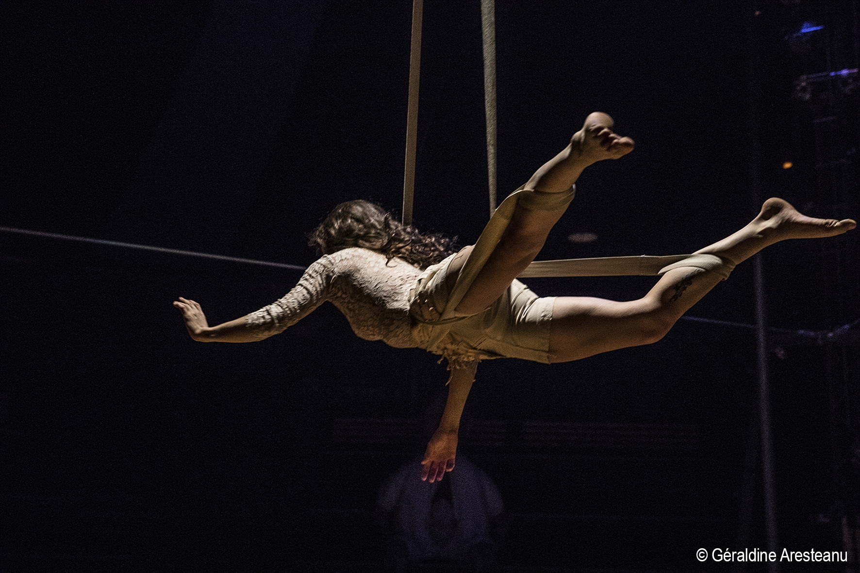 artistes créateurs : Guillaume Amaro (mât chinois), Florent Blondeau (fil), Adalberto Fernandez Torres (contorsion), Emma Verbeke (sangles), Monika Neverauskaite (roue cyr)