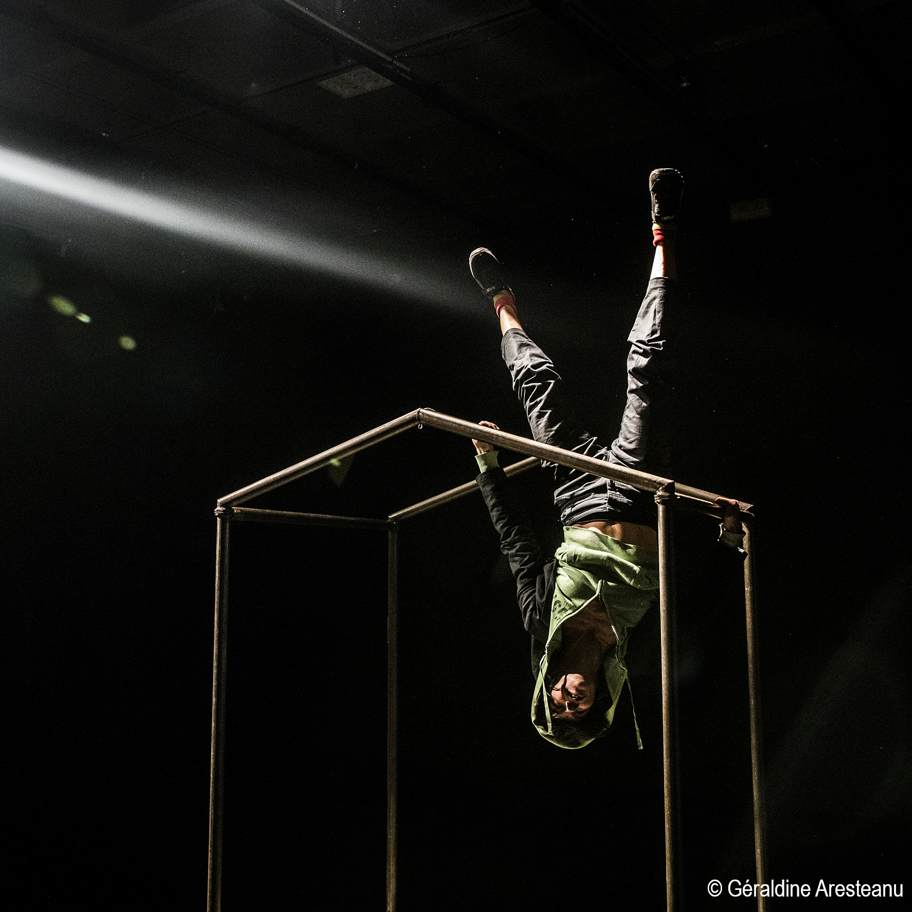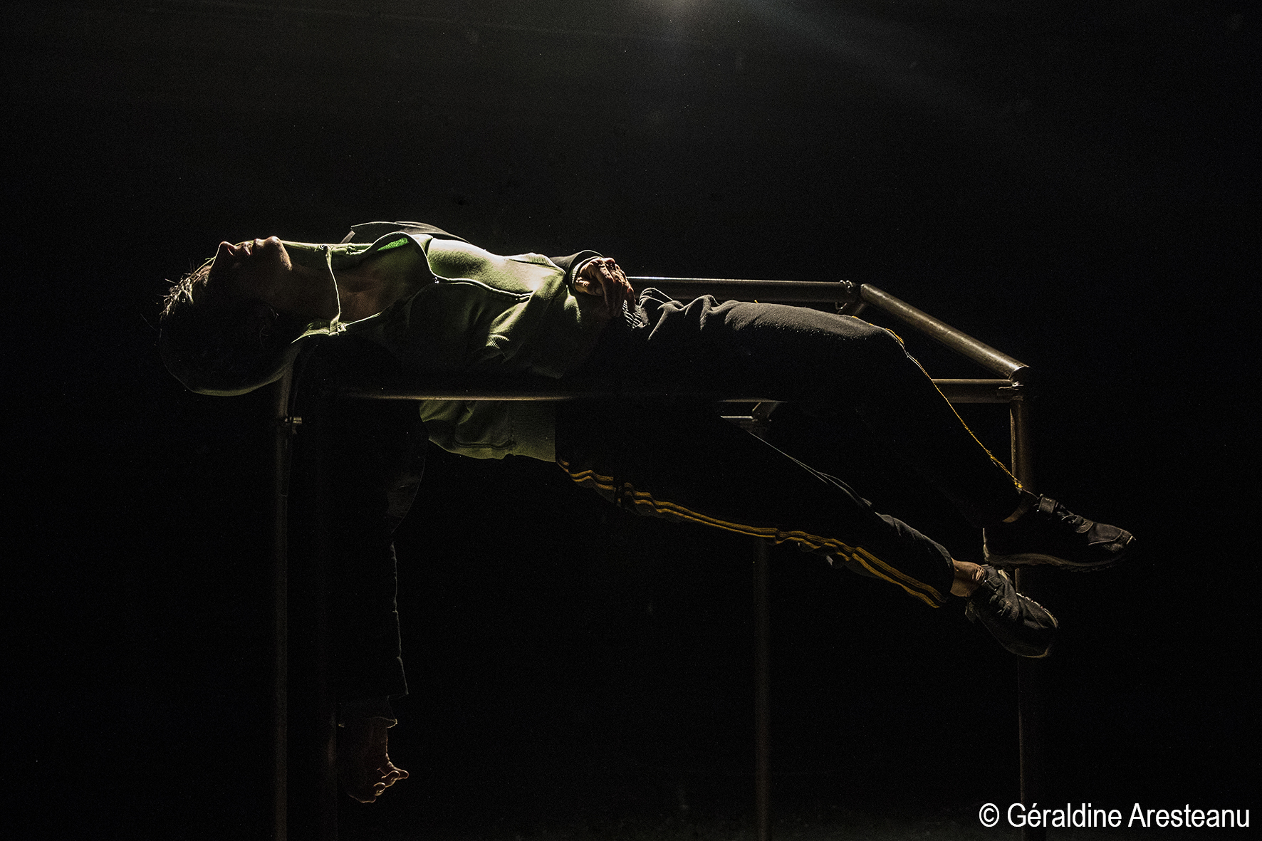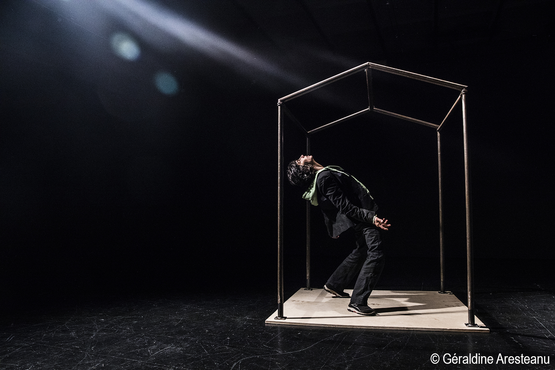 Ma maison pourrait être une valise, mes bottes à fermetures éclair toujours ouvertes, une chapka en hiver, le chapiteau, ma chatte Bô dans le coffre de ma Volvo, mon thermos et mon maté, mes fringues éparpillées, le soleil sur ma peau en été. Ma maison, je la fais de tubes de métal. Elle est si petite que ma tête dépasse, si légère que je la transporte sur mon dos. Elle n’a pas de mur, elle est vide. Barres de métal fines fines fines quand elle prend vie sous mes doigts ma maison frémit quand je m’y suspends, vit sous moi quand je roule sur son toit. Mon corps s’y promène, s’y agrippe et s’y frotte.